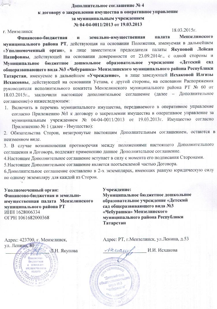 Дополнительное соглашение №4 <<< <<< <<<