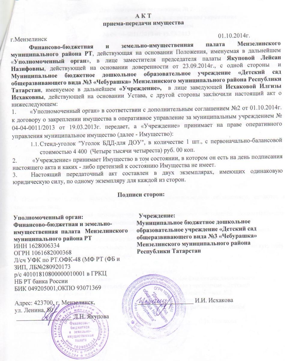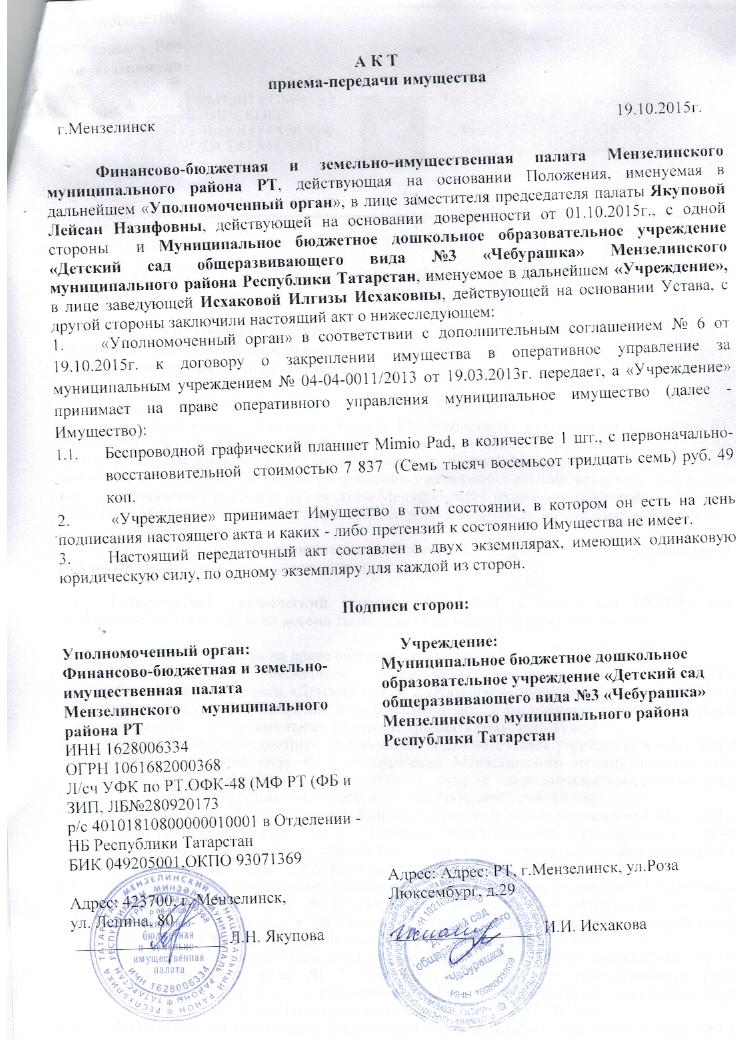 Договор о закреплении имущества <<<