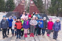 Для воспитанников подготовительной группы была организована экскурсия в парк, с целью воспитания чувства патриотизма и уважения к ветеранам ВОВ и своей малой родине, расширения знаний дошкольников о событиях Великой Отечественной войны и участии в этой войне героев – земляков.