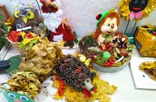 Выставка проходила в течение недели. В своих работах ребята использовали разные природные материалы – шишки, листья, цветы, веточки, мох, овощи, фрукты и т.д. На выставке были представлены лесные композиции, осенние сказки, игровые ситуации, панно, игрушки и многое другое.