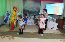 На праздник пришел гость - Петрушка и вместе с детьми посмотрел презентацию и узнал интересный процесс создания валенок, как правильно нужно выбрать хороший валенок. Дети узнали , что в старину валенки были только у богатых людей, поэтому их берегли, носили по старшинству и передавали по наследству, а войдя в новый дом, их ставили на почетном месте, у печки. В валенках не страшны морозы и метели, поэтому лучшей обуви на Руси не было.