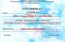Педагог нашего детского сада Сизова А.Р. приняла участие в зональном семинаре -практикуме "Особенности воспитания ребенка с ОВЗ: координация специалистов и семьи" , который прошел на базе МБДОУ "Детский сад компенсирующего вида №63" г.Нижнекамск.