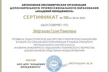 Воспитатель нашего детского сада Мифтахова Г.Р. приняла участие в региональном мастер-классе"Развитие инженерного мышления и технического творчества дошкольников средствами моделирования"