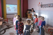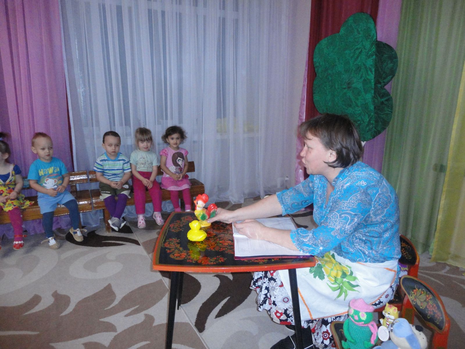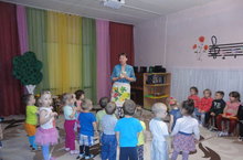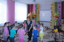 Воспитатель младшей группы Гатина М.В. провела с детьми развлечение. Дети играли в подвижные игры, инсценировали потешки.Воспитатель показала настольный театр "Мама утка и утенок Кряк"