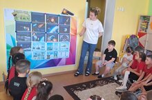 1961 елның 12 апрелендә Җир орбитасына бортында кеше булган дөньяда беренче космик корабль-иярченне чыгаралар. Шуннан бирле бу көнне Россиядә Космонавтика көне, ә дөньяда-кешенең космоска очу көне буларак билгеләп үтәләр. Әзерлек төркеме укучылары беренче космонавт Юрий Алексеевич Гагарин, Валентина Терешкова белән таныштылар. С.Королевның эше турында белдек. космодром-Байконур атамаларын искә төшердек, Җир орбитасы тирәли беренче очыш күпме дәвам иткән-1 сәгать 48 минут, скафандрлар, космик азык турында.Космик киңлекне карадык. Буяуларны бизәделәр, кул эшләре башкардылар.