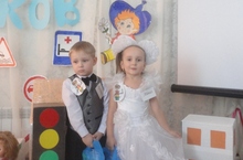 Дети средней группы, Соловьев Арсений и Салимова Айназ, приняли участие в смотре-конкурсе по ПДД "Зеленый огонек"