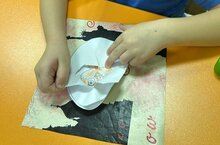 "Торбалы йорт һәм тылсымчы-төтен"әзерлек төркемендә рәсем элементлары белән Аппликация.заһятиенең максаты әдәби әсәр мотивлары буенча кышкы композиция төзегәндә сурәтләү - сәнгатьнең ярашуына кызыксыну уяту иде (түбәсендә торба булган миниатюралы өй шәүләсе, төтеннән ясалган фантазия образларын балавыз акбурлары белән ясау). Балаларга техниканы шулай куллану бик ошады.
