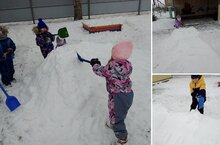В процессе данной деятельности, помимо фантазии и творческих способностей воспитанников, развивается ловкость, быстрота и координация движений. Дети придумывали индивидуальные разнообразные постройки.«Без тауны ничек төзедек» Безгә кунакка кыш килде Күп кар китерде. Шат, шат бала, Тау безгә хәзер кирәк.Мәктәпкәчә яшьтәге балалар өчен җәяү йөрү-һәрвакыт бәйрәм, ә кышкы җәяү йөрү-икеләтә бәйрәм! Балалар салкында туңмасын өчен, алар кызыклы эш белән мәшгуль булырга тиеш. Монда боз тауыннан шуу ярдәм итә. Инде берничә ел рәттән кыш җитү белән балалар бакчасы территориясендә кар тавы пәйда була. Кар тавы салу-хәйләкәр эш түгел, беренче карашка бер өем кар өеп, су сибеп, әзер кебек тоела! Әмма барысы да алай җиңел түгел. Иң мөһиме-яхшы кәеф һәм күтәренке кәеф. Балалар барысы да аны булдыру өстендә зур рәхәтлек һәм тырышлык белән эшләделәр, үз эшләре белән горурландылар. Әлеге эшчәнлек барышында, тәрбияләнүчеләрнең фантазиясе һәм иҗади сәләтләреннән тыш, җитезлек, тизлек һәм хәрәкәтләрне координацияләү үсә. Балалар индивидуаль төрле корылмалар уйлап тапкан.