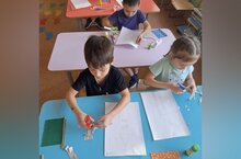 Әзерлек төркемендә сәнгать-эстетик үсеш дәресе "йорт төзибез" стандарт булмаган материалны кулланып аппликация . Балалар архитектор һөнәре турында тыңладылар, йорт салу өчен аның эскизы кирәк, диварлар өчен материал сайладылар:кирпеч, аны газета кәгазе ярдәмендә сурәтләделәр,түбә формасын сайладылар:өчпочмак яки трапеция.