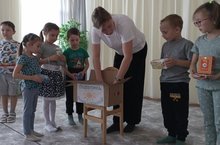 Воспитатель Халдеева Е. Н. показала детям почтовый ящик, куда опускают письма и открытки, рассказала каким образом они доходят до адресата. Еще познакомили дошкольников с работой почтальона. Дети узнали, что работник почты раскладывает корреспонденцию по стопкам, затем разносит по адресам письма, журналы, газеты.