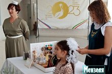 Архипова Полина, воспитанница подготовительной группы, приняла участие в августовской конференции. Она представляла композицию "Магазин готового платья купца А. Н. Луппова", сделанный педагогами детского сада.