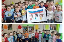 "Киләчәккә омтылыш "өстәмә белем бирү программасын тормышка ашыру кысаларында."Яшь буынга әхлакый тәрбия бирү "модуле буенча 7нче"Каенкай "балалар бакчасында тәрбияләнүчеләр тарафыннан РФ символикасы турында әңгәмә үткәрелде,РФ гимны тыңланды,флагф күмәк аппликациясе ясалды.#МыРоссия#МыВместе.Тәрбияче: Мухамадеева А. Е. -
