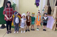 Дошкольное образование Мензелинского муниципального района, Сегодня воспитанники старшей группы МБДОУ 7 Берёзка, с целью развития интереса к английскому языку через сказку, приняли участие в инсценировке сказки на английском языке "Колобок на новый лад"