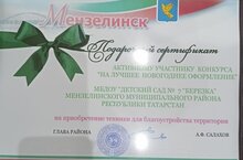 7 нче « Каенкай» балалар бакчасы « Иң яхшы Яңа ел бизәлеше» конкурсында актив катнашты һәм конкурста актив катнашкан өчен бүләк сертификатына ия булды