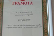 МБДОУ "Детский сад общеразвивающего вида №7 "Березка" Мензелинского муниципального района награждена за лучшую подготовку к новому учебному году