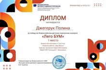 Джегерук Полина, воспитанница младшей группы является победителем Всероссийского конкурса "Лего Бум"