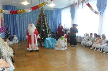 Вечерний новогодний бал прошёл в старшей группе. Замечательные были танцы и песни. По желанию Снегурочки в гости приходили скахзочные персонажи и множество маленьких Дед Морозов. Ну и конечно же был главный Дед Мороз с играми, поздравлениями и подарками.