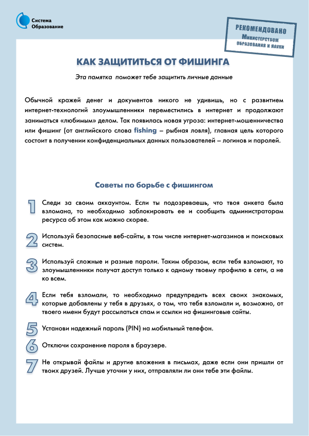 Памятки по безопасности в сети Интернет: