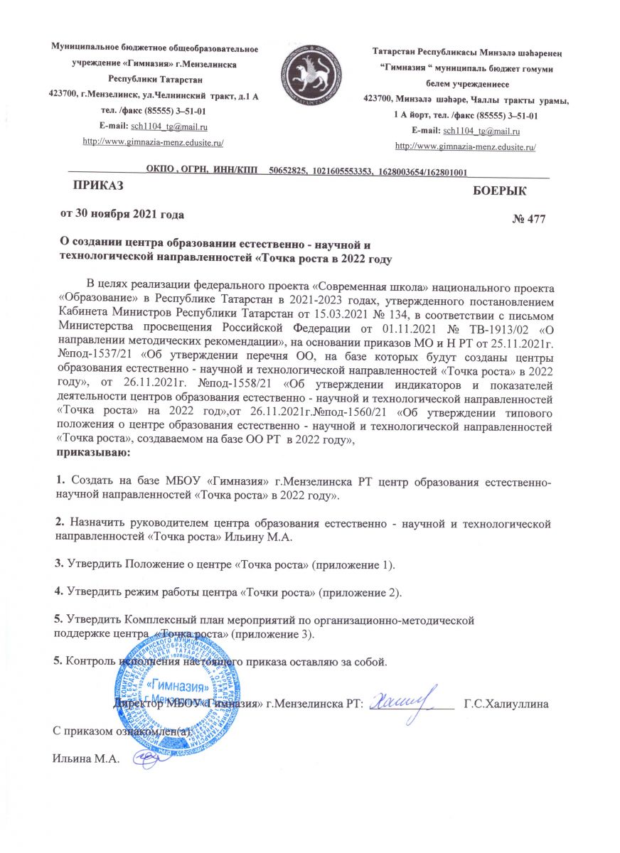 Положение о Центре образования естественно-научной и технологической направленностей «Точка роста»