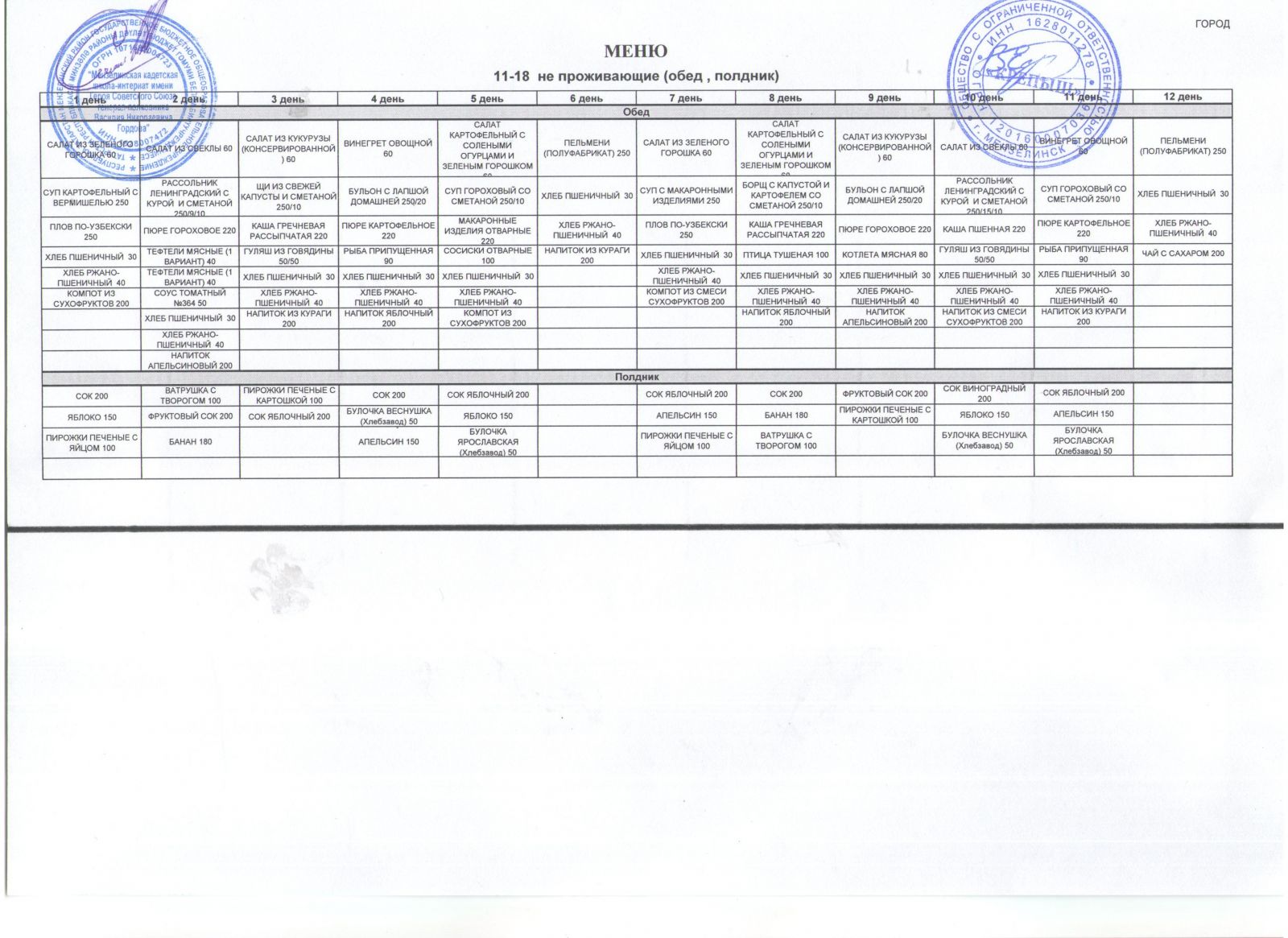 Примерное двенадцатидневное меню (сезон-осенний) для организации бесплатного горячего питания
