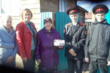 Кадеты 8 класса постоянно помогают ветерану ВОВ Пелагии Федоровне Бочкаревой. На днях кадеты поздравили ветерана с Днем пожилых людей и пожелали ей здоровье.