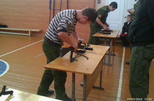 26.02.2015 года пришли соревнования «А ну-ка парни» среди 7-9 классов. Ход мероприятия: в начале каждая команда представила свой девиз и бечёвку, после провели ряд эстафет( бег со скакалкой, бег с мячом, тачанка и разборка и сборка автомата АК 74), кадеты подтягивались, одевали противогазы, поднимали гири, чистили картошку и тянули канат.