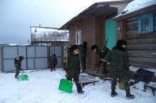 Учащиеся 6 класса оказывают помощь ветерану тыла Бочкаревой П.Ф. в течении года. Этот раз они очищали двор и крышу от снега, убирались дома.