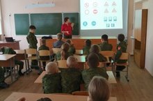 В рамках недели "Безопасное движение на дорогах" руководителем ЮИД Мензелинской кадетской школы Бадертдиновой Р. М. Была проведена игра-викторина "Азбука юного пешехода", в котором приняли учащиеся начальных классов.