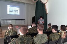Тәрбияче Мөбарәков р. м.һәм 11 сыйныф кадетлары Сапожников Евгений 24 гыйнварда 7 сыйныф кадетлары өчен "Холокост. Буыннар хәтере". -