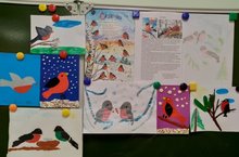 Зимой часто можно любоваться красивой птицей - снегирь, особенно на фоне белого снега. Услышать их звонкое пение. В течение всей зимы снегири собираются в небольшие стайки, питаются растительной пищей: ягодами рябины, семенами деревьев. И к нам в класс сегодня прилетела стайка этих красивых птиц.