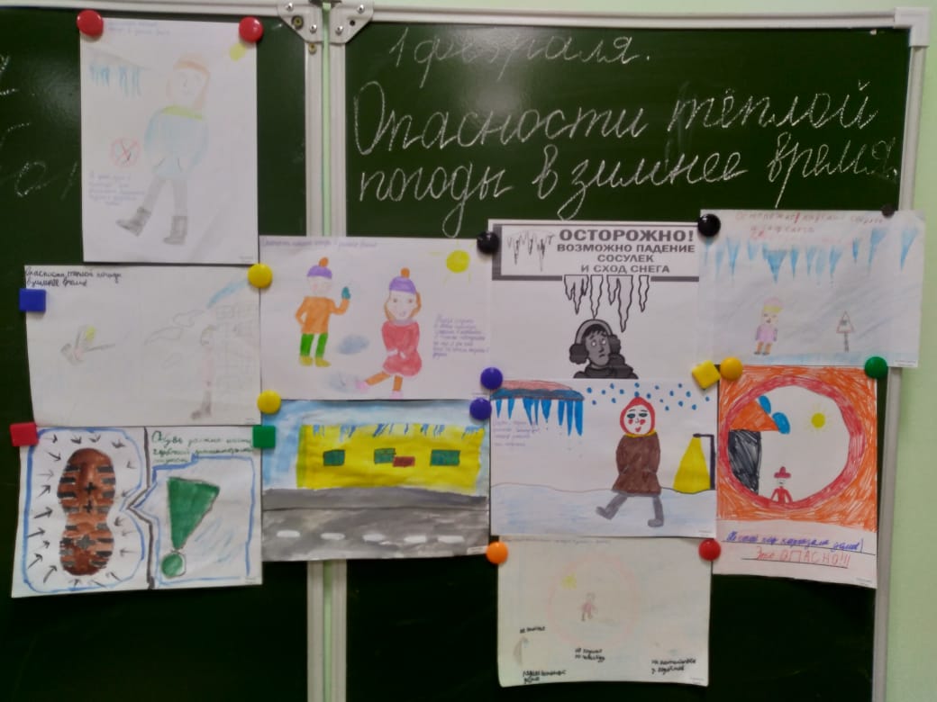 В 4 классе КШИ проведена беседа на актуальную тему: «Опасности тёплой погоды в зимнее время». Вспомнили все правила изученные ранее, старались придумать какие то новые знаки, а потом с удовольствием нарисовали. -