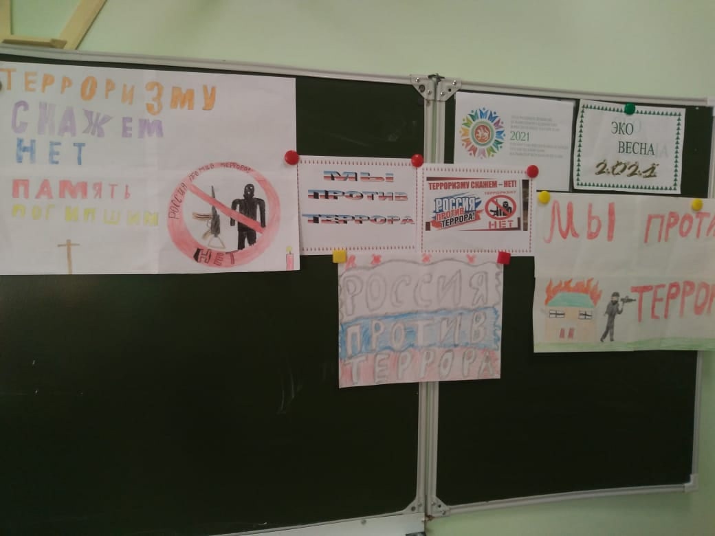 Опубликовано: 12.05.2021В 4 классе провели беседу на тему «Терроризм», ребята просмотрели плакаты о действиях террористов. Рассуждали о таких понятиях как: заложники, террористический акт, физическое насилие... Ребята проявили чувство милосердия к жертвам теракта в гимназии города Казани. Вспомнили события теракта в Беслане в 2004 году. Поговорили о правилах поведения в подобных ситуациях, нарисовали плакаты на тему «Антитеррор».