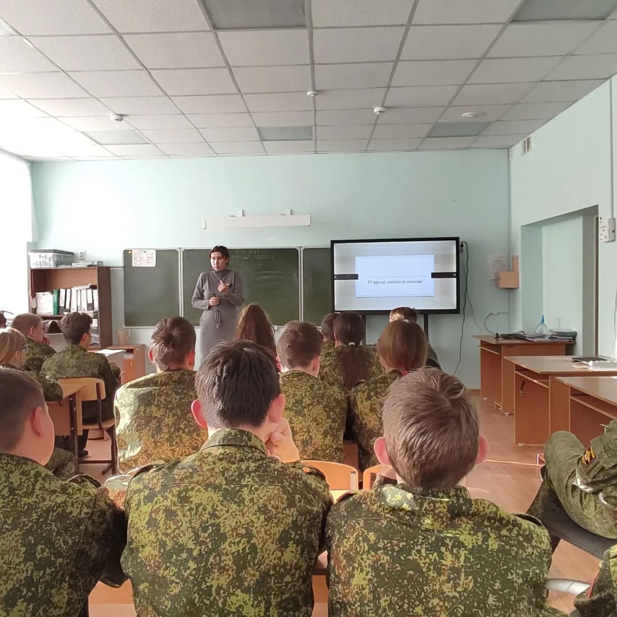 Педагог-оештыручы Сафина А.и. 8, 9, 11 сыйныф укучылары өчен сюс һәм насвай зыяны турында профилактик әңгәмә үткәрде. Бу матдәләр кулланудан нәтиҗә турында фикер алыштылар, шулай ук авыруларның нәтиҗәләре ачык күрсәтелде.