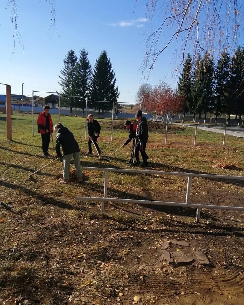16 октябрь көнне Минзәлә кадет интернат-мәктәбе территориясендә территорияне коры яфраклардан, чүп-чардан, коелган ботаклардан чистарту буенча өмә үткәрелде.