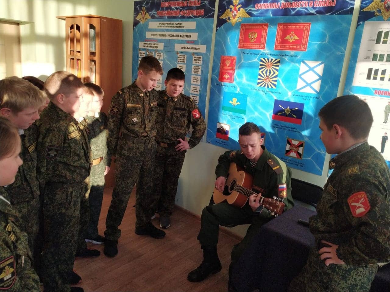 Борисов Ярослав безнең кадет мәктәбен 2020 елда тәмамлый һәм шул ук елның көзендә армиягә китә. Ярослав Камышин шәһәрендә радиацион химик биологик яклау гаскәрләренә эләгә. 2021 елның октябрендә кайттым һәм шунда ук безнең мәктәптә булды. Ярослав балалар белән алган тәэсирләре белән уртаклашты, хәрби хезмәтнең авырлыклары турында сөйләде, гитарада уйнавын күрсәтте, бу балаларны бик рухландырды.