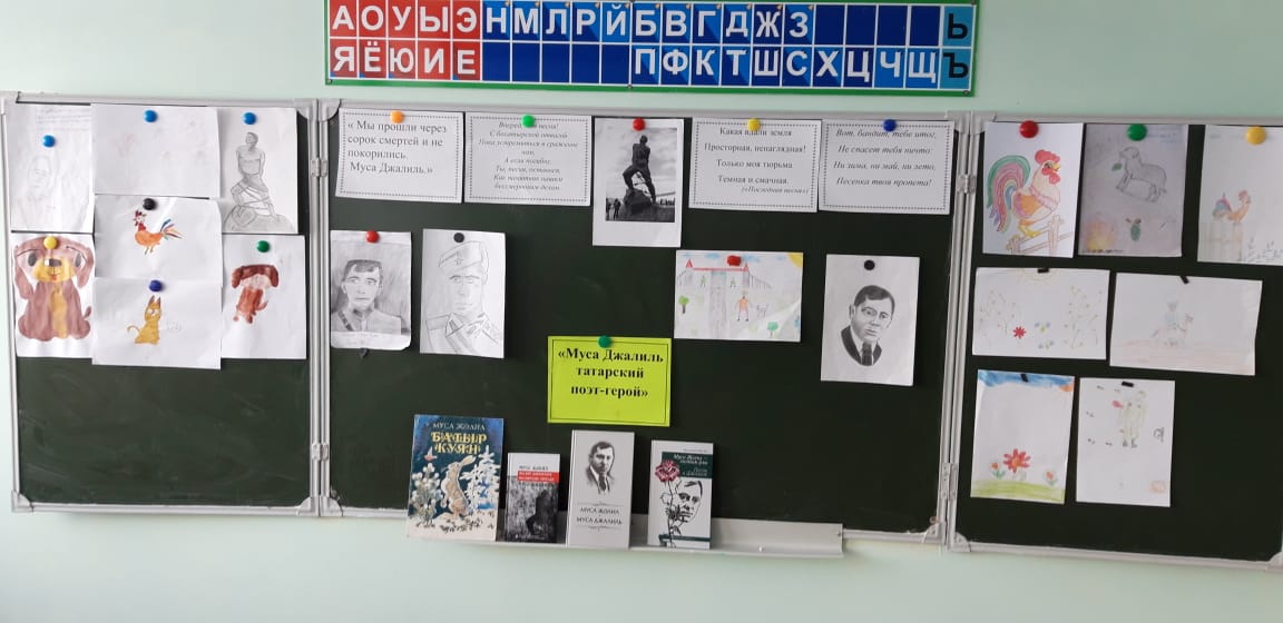 Опубликовано: 16.02.202216 февраля в начальных классах прошло внеклассное мероприятие «Всегда ты будешь живым примером…», посвященное 116-летию со дня рождения татарского поэта – героя Мусы Джалиля с целью воспитания чувства патриотизма, гордости за свою родину, за свой народ. Ребята познакомились с жизнью и творчеством поэта. Прочитали его стихи на русском и татарском языке, нарисовали рисунки. Лучшими чтецами стихов стали Огорельцев В, Кабиров Р, Урасметов Р, Волченко Д, Килькеева К, Султанов А, Сомов Д, Федосеев Я, Орехов В, Жигитов Д, Лебедева А.Также подведен конкурс рисунков 1 место-Сютков Е, Кучахметова А; 2 место –Галеев Д, Никитин Т, Федосеев Я, Самаркина А, Огорельцев В, Кучахметова А.; 3 место – Никитин Д, Ощепков М, Шимановский Е, Никитина К, Нормуратов А, Шагалиев Д, Кучахметов М.