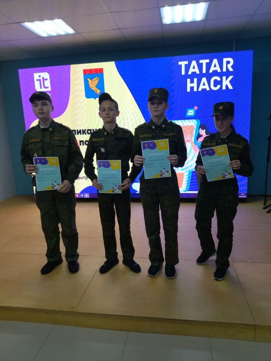 29 сентябрьдә "ЯЛКЫН" яшьләр үзәгендә безнең кадетлар Циффрлаштыру елы кысаларында гамәлгә ашырыла торган Татарстан район һәм шәһәрләрендә циффрлы чишелешләр эшләү буенча "TATAR HACK" республика конкурсында катнаштылар.Әлеге чарада 10 команда катнашты. Һәр командада 4әр бала һәм педагог эшләде, алар конкурс барышында районда проблемалы мәсьәләләрне хәл итү буенча проектлар һәм презентация әзерләделәр. Элегрәк әлеге чара Мамадыш, Бөгелмә, Буа, Әлмәт, Кукмара, Арча, Түбән Кама һәм Нурлатта узган иде инде. Актив катнашканы өчен безнең мәктәп укучылары сертификатлар белән бүләкләнде!