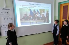 Сегодня в рамках воссоединения Крыма и Севастополя с Россией в 1-9 классах просмотрели видеоролики на тему «Крым».