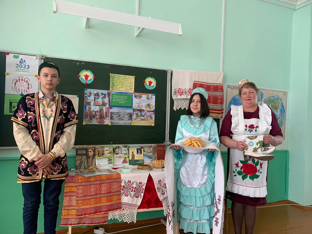 Мәктәптә Пушкин картасы буенча Кадрәк мәдәният йорты директоры Ф.Сафиуллина “Һәр халыкның үз бизәге” дигән әңгәмә-сәяхәт уздырды. Чара барышында укучылар үзебезнең түбәктә яшәүче татар, рус, керәшен татарлары, чуваш, мари милләтләренең киемнәре, гореф-гадәтләре, йолалары, милли ризыклары белән таныштылар.