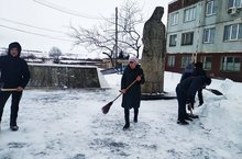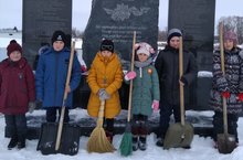 Жэмэк башлангыч мэктэбе укучылары атна саен памятник янын кардан чистартып торалар.