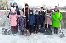 Жэмэк башлангыч мэктэбе укучылары памятник янын кардан чистарттылар.