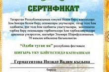 достижения 15.01.2018 Учащиеся нашей школы Фаттахова Зарина-2 класс, Гермагентова Инзиля-4 класс получили очередные сертификаты.