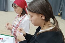 Воспитатель МБДОУ Калтаковский детский сад "Ромашка" в составе фольклорного ансамбля "Мари кас" показала мастер класс "Марийская культура. Марийская вышивка" в гимназии г. Мензелинск с учащимися 8 класса.
