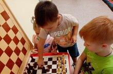 Сегодня дети подготовительной группы продолжили знакомиться с шахматной доской. Заучили стих "Белый отряд, черный отряд..." Провели дидактическую игру "Покажи где стоит Конь?"