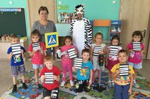 24.09.21 нче елның 24 нче сентябрендә "Солнышко" балалар бакчасында тәрбияче Волкова Л.А., Шаматова Н. А., Зотова Э. И. урта - мәктәпкә әзерлек төркеме балалары өчен "Зебрага кунакка"дигән темага дәрес үткәрде. Чара барышында балаларга юлларда куркынычсызлык буенча башлангыч күнекмәләр бирелде. Балалар янына кунакка Зебра килде, ул юлны ничек дөрес итеп чыгу турында сөйләде. Материалны балалар үзләре ясаган "Зебра" аппликациясе ныгытты.