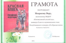 Поздравляем Некрасову Веру, занявшую 2 место в муниципальном этапе Республиканского конкурса детских поделок "Я и Красная книга".