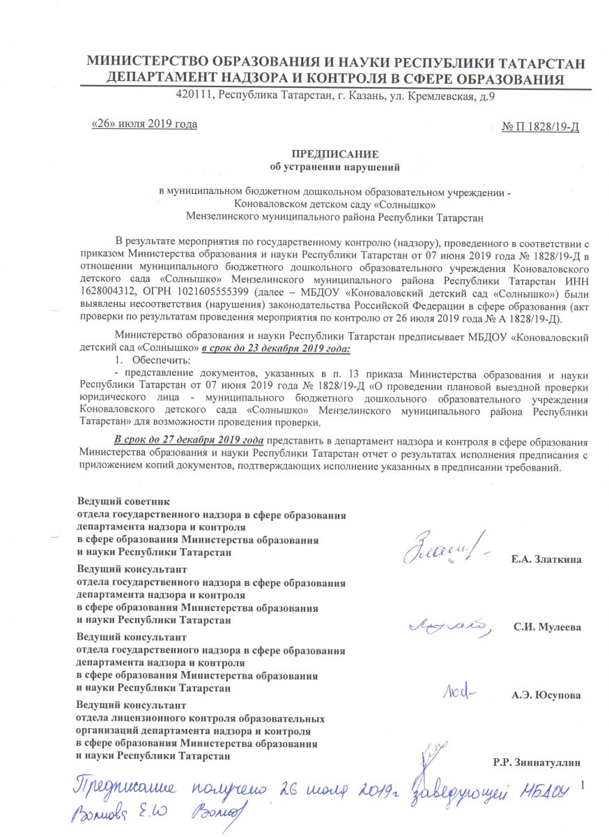 Предписание департамента контроля и надзора в сфере образования 2020 г