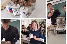 Сегодня ребята своими руками сделали «блиндажные свечи». Окопная свеча очень необходима нашим бойцам СВО. Мастер класс показали учащиеся 9 класса Илья и Оля. Вначале мастера класса учитель химии и биологии Акбашева Ляйсан Ильгизовна рассаказала для кого и для чего предназначены эти свечи. Пустые консервные банки, гофрированный картон и пищевой парафин – из этих нехитрых составляющих получились окопные свечи. Консервная банка должна быть из негорючего материала. Оптимальный объём банки 0,4 литра. Для наполнения брался гофрированный картон. Он разрезался на ленты, которые на сантиметр меньше высоты банки. Потом они скручивались рулоном и помещались в банку. Из гофрированного картона сделали фитиля. В конце все банки заливали парафином. Затем ребята нарисовали картинки и закрепили их к банкам скотчем. Каждая окопная свеча понесет солдатам еще и душевное тепло!