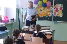 Инспектор ГИБДД встретился с нашими первоклассниками, побеседовал о правилах дорожного движения и подарил каждому светоотражающие элементы.