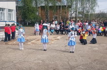 Мероприятие. посвященнон Дню Победы, началось с шествия Бессмертного полка. Шествие возглавили учащиеся школы, к ним присоединялись жители деревни. Шествие закончилось на территории школы. В митинге принимали участие ученики, учителя и мужской хор из жителей деревни.Во время митинга звучали песни, стихи.